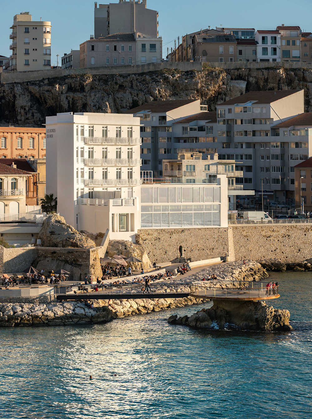 At Marseille’s art deco stay Les Bords de Mer, a 20-minute taxi ride from La Friche, every bedroom has a sea view. There’s a rooftop pool and bar, too, ideal for unwinding after a day of exploring.