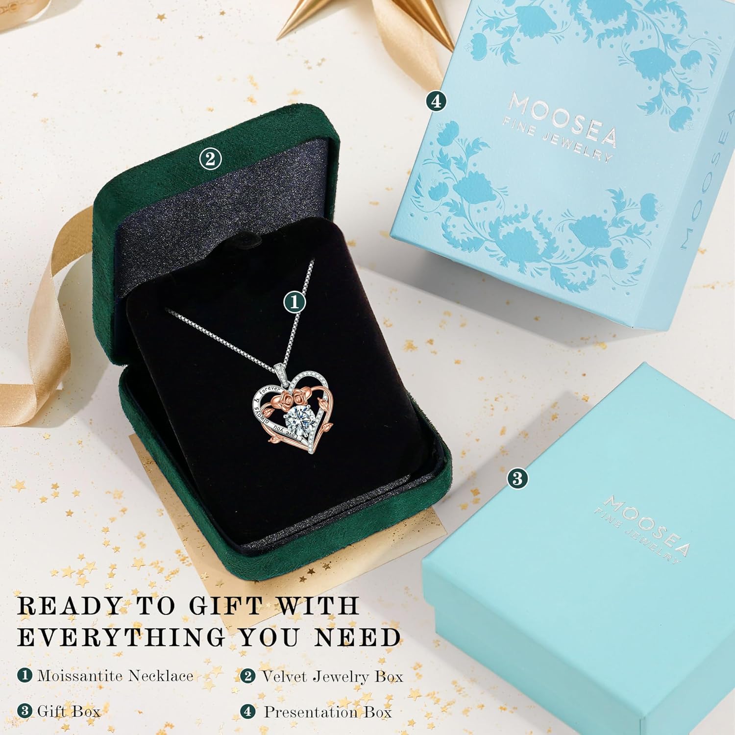 MOOSEA Easter Gifts for Women Wife – 925 Sterling Silver Moissanite Necklace Anniversary Eternity Jewelry Present, Birthday Gift for Women Her, Personal Gifts Mom Grandma Friend Sister